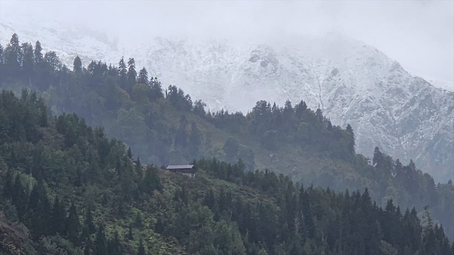 Rize'nin yüksek rakımlı yaylalarında kar etkili oldu.