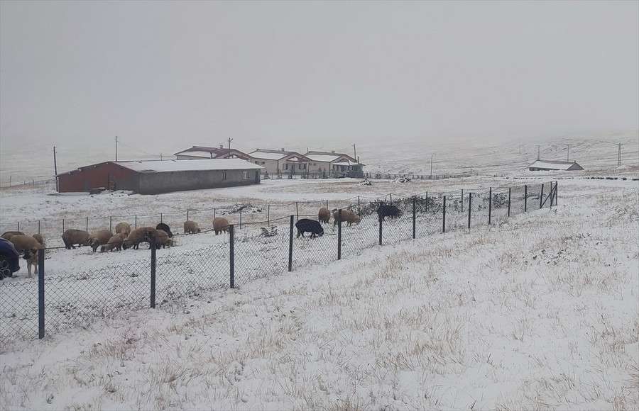 Kars'ın Sarıkamış ilçesinin yüksek kesimlerinde kar etkili oldu.