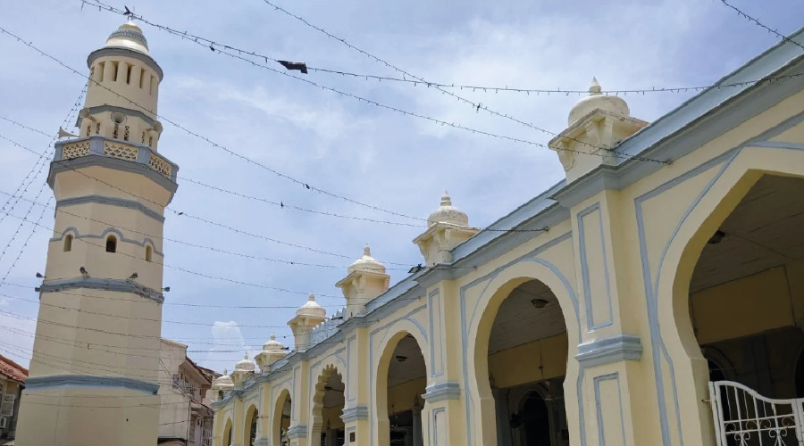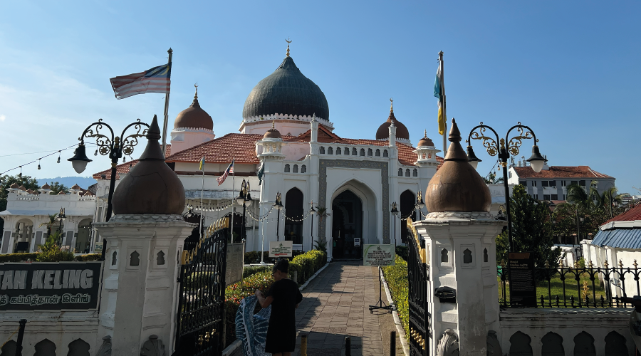 Bölgedeki ilk kalıcı Müslüman kurumu olan cami, 1916 yılında genişletilerek yenilenmiş. Geometrik motifleri, kubbesi, at nalı kemerleri ve soğan kubbeli minaresiyle Hint-İslâm mimari üslubunu yansıtmakta. Caminin avlusunda Chulia caddesine bakan konumda bir sonraki kapitan keling olan Hintli Müslüman tüccar Mohamed Merican Noordin’in aile türbesi (Makam Keluarga Noordin) ve vakfiyesi olan okul da bulunmakta.